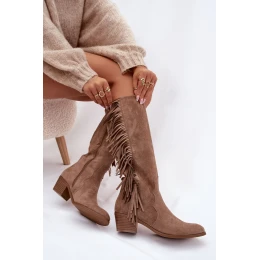Dámske kovbojské topánky s lemom a zateplením - khaki Firlina