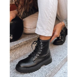 Šněrovací kozačky z imitace kůže jsou ideální volbou pro doplnění podzimně-zimních outfitů. Jsou umístěny na hrubé podrážce. Na vnitřní straně kozaček je také zip. Model je zateplený. Má standardní velikost. K dostání ve dvou barevných provedeních.