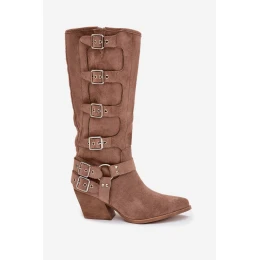 Štýlové dámske kovbojské čižmy Fivelle v tmavobéžovej farbe prinášajú originálny westernový vzhľad doplnený ozdobnými prackami. Stabilný podpätok poskytuje pohodlie pri chôdzi a opticky predlžuje postavu. Univerzálna tmavobéžová farba sa dá ľahko kombinovať a dodáva outfitu nádych elegancie a ležérneho štýlu.
