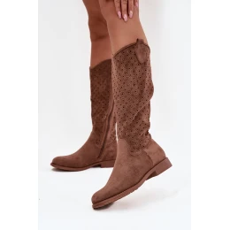Kozaki Damskie Na Płaskim Obcasie Z Ażurowym Wzorem S.Barski HY52-531 Brązowe