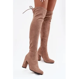 Dámské kozačky na podpatku béžové model 21714951 - Boto
