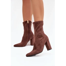 Dámské kozačky na podpatku s prošíváním hnědé model 21709481 - Boto