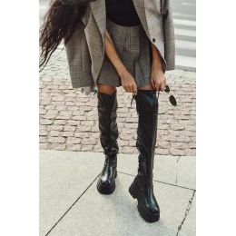 Kozaki za kolano osadzone na masywnej platformie to świetny wybór na zimowe dni, łączący styl i wygodę. Model wsuwany, z dodatkowym suwakiem na dole cholewki, zapewnia łatwe zakładanie i dopasowanie. Na górze cholewki ściągacz, Ocieplone wyłącznie na poziomie stopy, gwarantują ciepło i komfort. Ich modny fason doda charakteru każdej stylizacji, sprawiając, że będą doskonałym uzupełnieniem zimowo-jesiennych outfitów. Przy wyborze rozmiaru prosimy sugerować się tabelą rozmiarów.