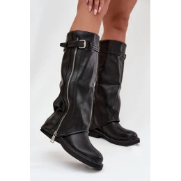 Dámské kozačky s límcem sponou a stříbrným zipem vyhřívané černé model 21711800 - Boto