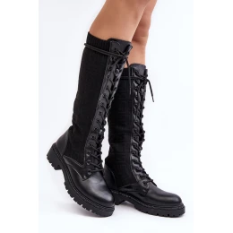 Dámské kozačky se šněrováním a elastickým svrškem černé model 21642236 - Boto