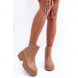 Sztyblety Botki Damskie Skórzane Z Ozdobami Beżowe Lobb