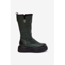 Štýlové dámske čižmy Zazoo v olivovej farbe sú vyrobené z kvalitnej pravej kože a majú vlnenú izoláciu, ktorá udrží nohy v teple aj počas chladných dní. Elegantný dizajn sa hodí k šatám, sukniam a úzkym nohaviciam a poskytuje pohodlie na každodenné nosenie.