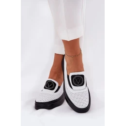 Dámske kožené mokasíny na platforme a klinoch Vinceza - biele