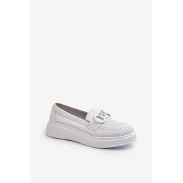 Dámské kožené mokasíny na platformě bílé model 21655823 - S.Barski