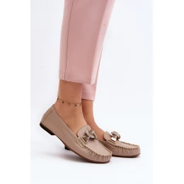 Skórzane Mokasyny Damskie Z Ozdobą Laura Messi 2761 Beżowe