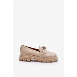 Dámské kožené mokasíny s ozdobou model 21652964 béžové - Laura Messi