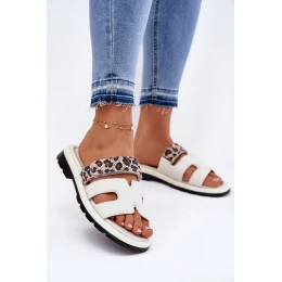 Dámské Kožené Pantofle S Zipem Leopard Světle Béžové model 21697787 - VINCEZA