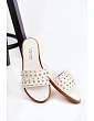 Wyjątkowe klapki damskie z modnymi, ozdobnymi ćwiekami. Wykonane z eko skóry. Miękka wkładka Comfort Shoes wykonana z eko skóry jest bardzo wygodna w użytkowaniu. Klapki posiadają wokół podeszwy delikatne zdobienie. Nosek odkryty, zaokrąglony. Osadzone na płaskim obcasie, z podeszwą wykonaną z tworzywa sztucznego. Solidny model, idealny na letnie dni! Przy wyborze rozmiaru prosimy sugerować się tabelą rozmiarów.