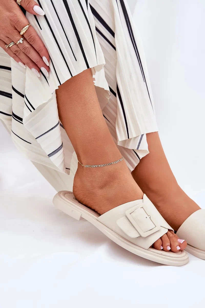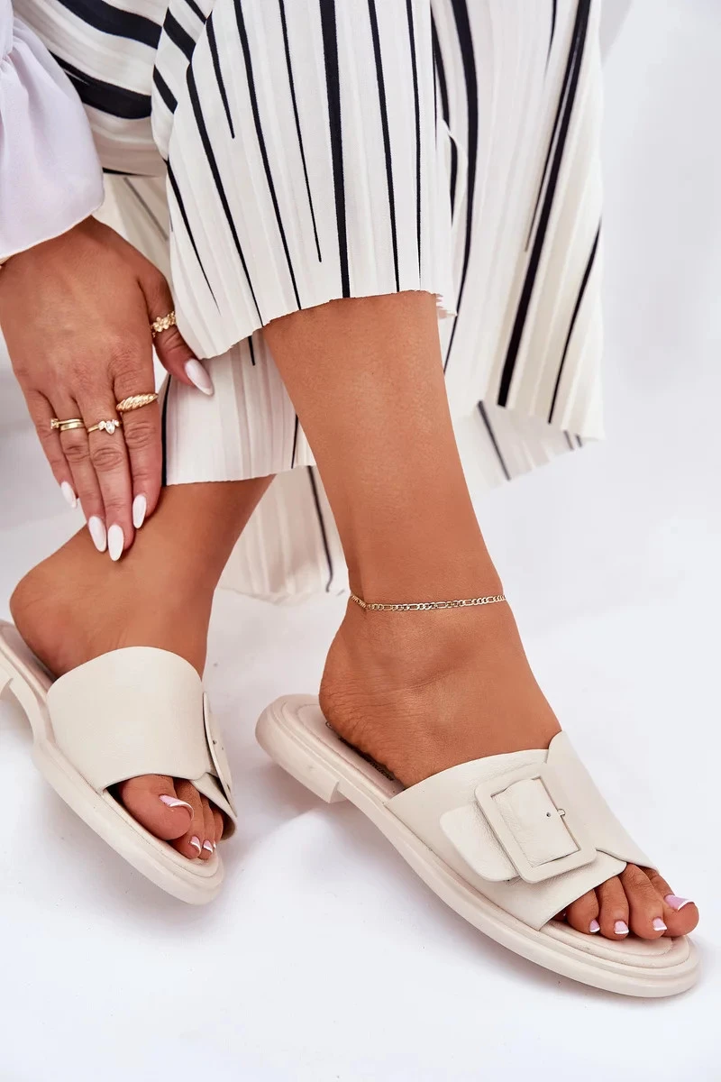 Dámske kožené papuče s prackou D&A - béžové
