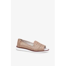 Dámske kožené perforované baleríny s otvorenou špičkou S.Barski - zlaté