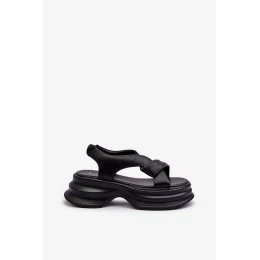 Dámske kožené sandále na robustnej podrážke čiernej farby GOE