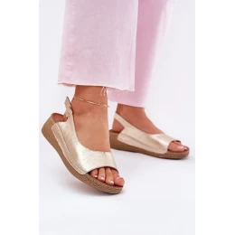 Dámské kožené sandály na klínu model 21701991 Zlaté - Maciejka