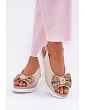 Skórzane Sandały Damskie Na Koturnie Z Kokardą Zazoo 1882 Beżowe