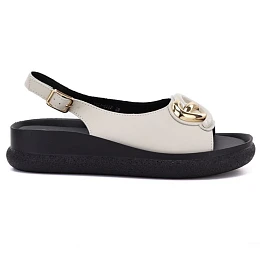 Dámské kožené sandály na platformě béžové model 22117577 - S.Barski