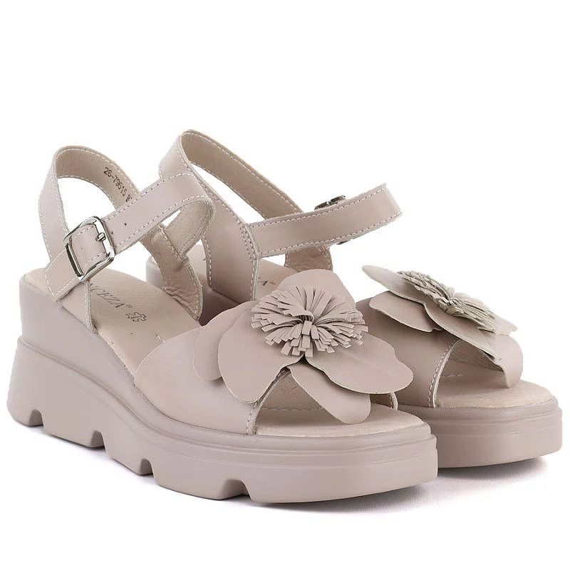 Dámské kožené sandály na platformě béžové Vinceza 26-79615