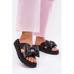 Dámské kožené sandály na platformě s mašlí model 21702245 černé - CheBello