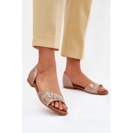 Skórzane Sandały Damskie Na Płaskim Obcasie Maciejka 06947-25 Złote