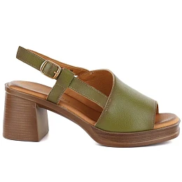Dámské kožené sandály na podpatku zelené model 22116369 - VINCEZA
