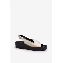 Dámské kožené sandály na tlusté podrážce zlatý model 21646330 - Zazoo