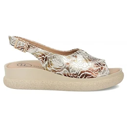 Sandály jsou posazeny na pohodlném klínu, který zaručuje dokonalý doplněk letní dámské stylizace,