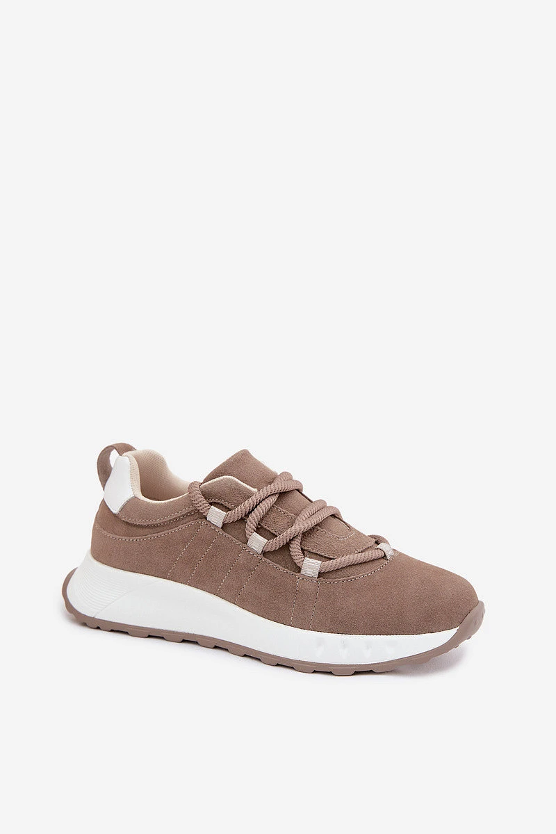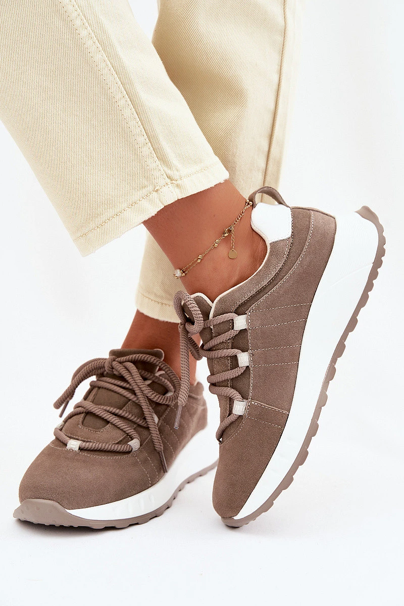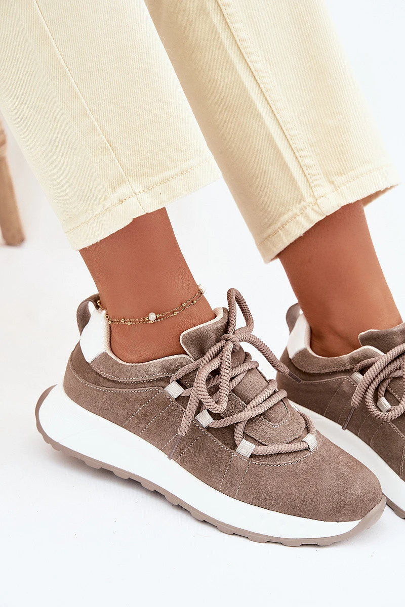 Dámské tenisky vyrobené z přírodního semiše jsou stylovou a pohodlnou volbou pro každodenní outfity. Měkký semiš dodává elegantní vzhled a zároveň zajišťuje komfort při nošení. Model je postaven na platformě, která jemně zvyšuje siluetu a zvyšuje pohodlí při chůzi. Tenisky se vyznačují silnými šňůrkami, které tvoří zajímavý dekorativní prvek a zdůrazňují moderní styl obuvi. Boty mají koženou vložku Comfort Shoes, která poskytuje vhodný komfort a dobře se přizpůsobí noze. Díky lehké konstrukci je model skvělý pro každodenní nošení a hodí se k mnoha stylům – jak s džíny, tak s kalhotami z textilu nebo sportovními soupravami. Při výběru velikosti se řiďte tabulkou velikostí.