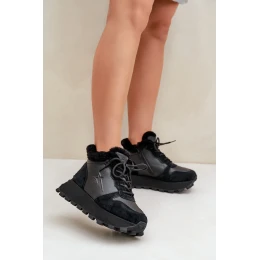 Dámske kožené tenisky s kožušinou na platforme Big Star OO274A329 black
