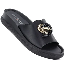 Dámske kožené žabky na platforme čierne S.Barski KV61-6046