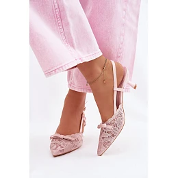 Dámské krajkové sandály na podpatku s mašlí Růžové Maribelle