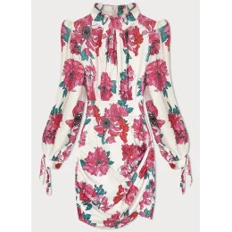 Pridanie recenzie k Krátke šaty so stojacím golierom kvetinové ecru-ružové (A1080)