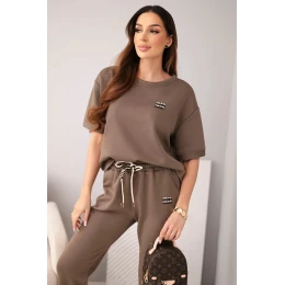 Tento štýlový dámsky komplet je vynikajúcou voľbou pre ženy, ktoré si cenia pohodlie a módny, minimalistický štýl. Komplet pozostáva z voľnej blúzky s krátkymi rukávmi a pohodlných nohavíc s elastickým pásom. Je to ideálny dámsky komplet na každodenné nosenie - vhodný na prechádzky, nákupy aj do domácnosti.
