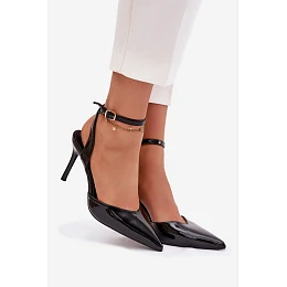 Dámske lodičky vyrobené z lakovanej ekokože. Lesklý dizajn vyzerá na nohe krásne a špicatá špička dodáva celku štíhlosť. Model má nastaviteľný remienok so sponou, vďaka ktorému sa topánka ľahko prispôsobí nohe. Ženské, klasické a nadčasové - ideálne na večerný styling. Pri výbere veľkosti sa riaďte veľkostnou tabuľkou. Pri výbere veľkosti sa riaďte veľkostnou tabuľkou.