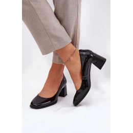 Dámske lakované lodičky na podpätku Vinceza - čierne