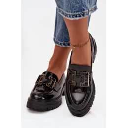 Dámské lakované mokasiny s ozdobou Černé Ysandra