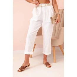 Dámske ľanové nohavice s bavlnou a opaskom biele