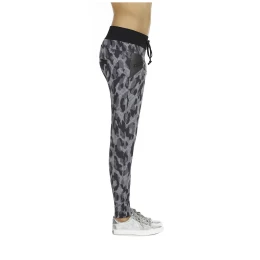 Jsou z příjemného elastického materiálu, krásně modelují postavu, v módním maskáčovém designu. Barva černo-šedá.