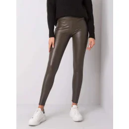 RUE PARIS Tmavě khaki legíny z ekokůže.