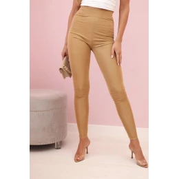 Dámske legíny s vysokým pásom z elastického materiálu camel