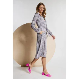 Dámské dlouhé letní šaty s dlouhým rukávem, v pase na zavazování, horní díl je na zapínání na knoflíky.