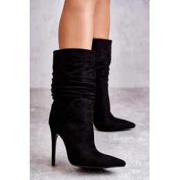 Damskie Marszczone Botki Kozaki Czarne Laguna