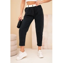 Pohodlné a módne dámske nohavice z mäkkého manšestru sú skvelou voľbou na chladnejšie dni. Ich moderný strih so zúženými nohavicami a elastickým pásom zaručuje dokonalé prispôsobenie a vysoký komfort pri nosení. Súčasťou súpravy je látkový opasok, ktorý zvýrazňuje pás a dodáva celému stylingu štýlové zakončenie.