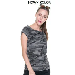 Dámske tričko ušité z hladkého materiálu single jersey s tlačeným maskáčovým vzorom. Tričko má dvojité švy a pevné lem. Gramáž: 170g / m2. Zloženie: 100% poločesaná bavlna.: