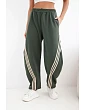 Elastický pás zaručuje pohodlné nosenie a voľný strih poskytuje voľnosť pohybu. Módne rozšírenie nohavíc na bokoch nohavíc dodáva celku športový charakter a opticky zoštíhľuje postavu. Nohavice sú ideálne na každodenné nosenie - v kombinácii s tričkom, mikinou alebo teniskami.