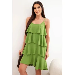 Dámske mini šaty bez ramienok s volánikmi olivové