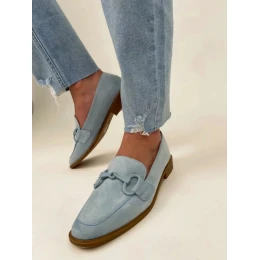 Klasické dámské mokasíny. Díky stylovému zdobení na přední straně získávají boty jedinečný půvab... Mokasíny si již našly stálé místo v srdcích žen: ) Budete v nich vždy vypadat módně a zároveň se budete cítit pohodlně... Vnější materiál - ekologický semiš.
