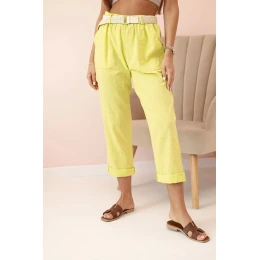Dámské model 21035585 kalhoty s bavlnou a páskem kiwi - K-Fashion